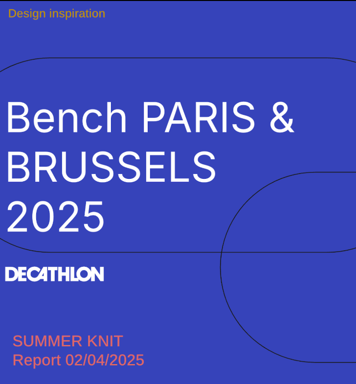 BENCH & TRADE SHOW REPORT W26-27 PREMIERE VISION Ecodesign Sport & Outdoor W26-27 PREMIERE VISION KNIT REPORT BRUSSELS MOTOR SHOW 25 PREMIERE VISION 25 BENCH PARIS/BRUSSELS 25 BENCH NYC 25 Dutch design week 24 SS26/27 Compo bench Asia PREMIERE VISIONPREMIERE VISION MILAN DESIGN WEEK KUIKMA BIENNALE DU GRAPHISME 2025 TRENDS POLAIRES BENCH DEC 2024 BENCH SHANGHAI 24 BENCH BRUSSELS 24
